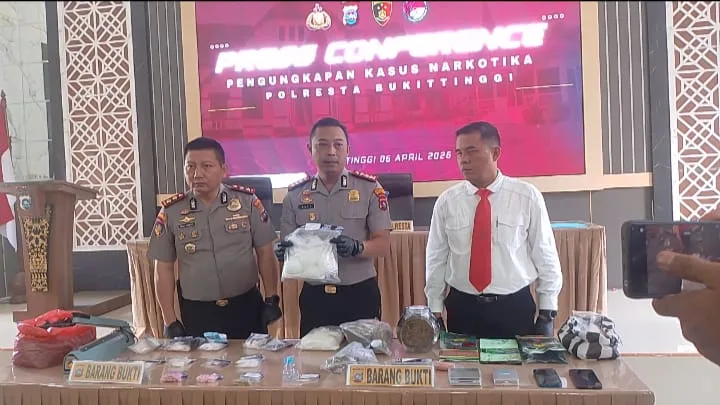 Dalam keterangan persnya Kapolresta Bukittinggi Kombespol Ruly Indra Wijayanto,S.I.K,M.Si menjelaskan bahwa, ” telah dilakukan penangkapan terhadap pelaku tindak pidana diduga jenis Sabhu,pil ekstasi dan ganja pada hari Sabtu 4 April 2026 sekitar pukul 02.00 WIB, yang bertempat di dalam sebuah rumah di kampung Danguang Danguang jorong Sungai angek kecamatan Baso kabupaten Agam”, ujarnya.