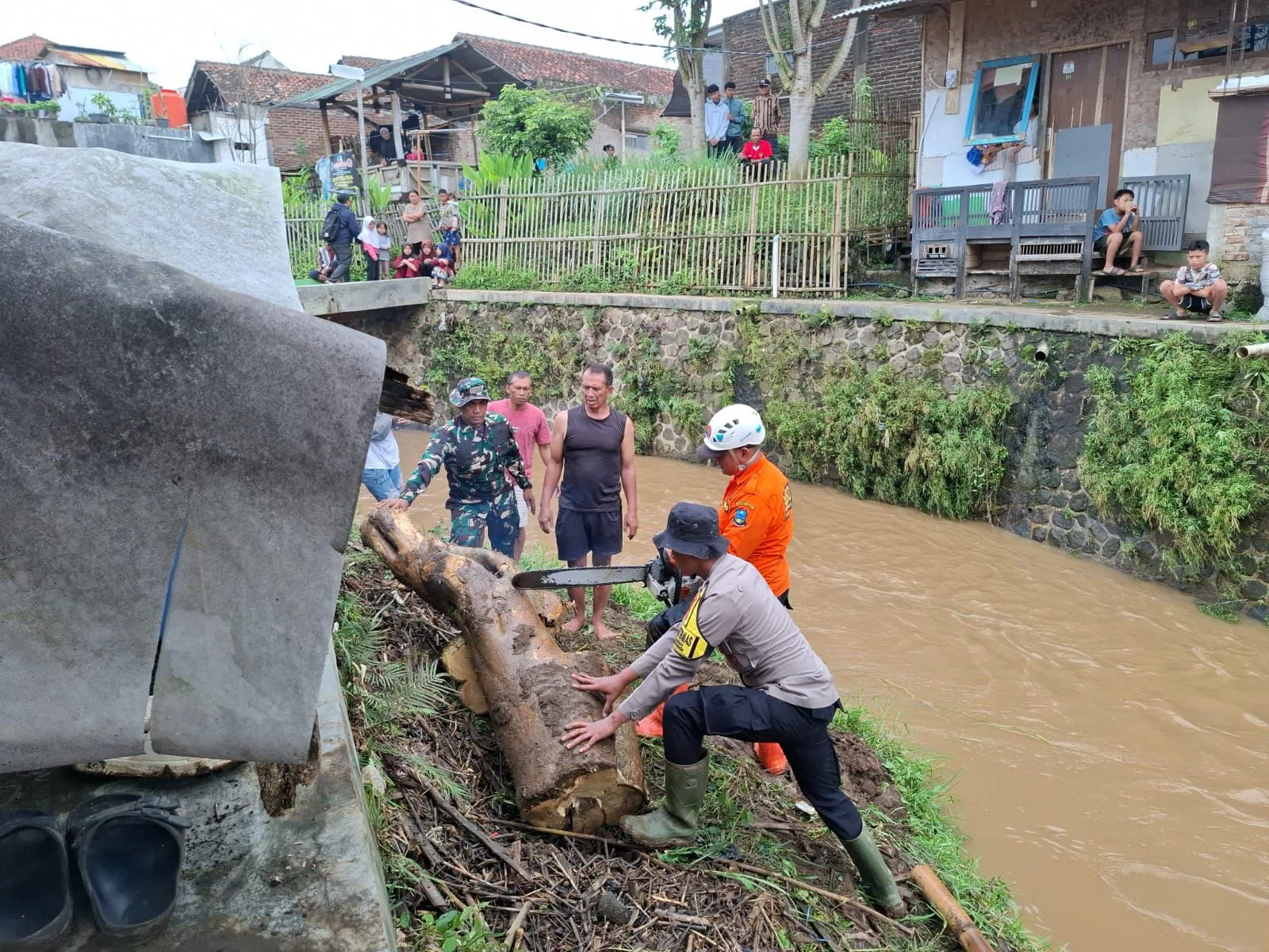Kegiatan dipimpin langsung Kapolsek Pasirwangi Iptu Wahyono Aji bersama personel dan unsur gabungan, meliputi evakuasi material kayu besar yang menyumbat aliran sungai serta pembersihan material longsor yang menutup akses jalan umum di beberapa titik terdampak.