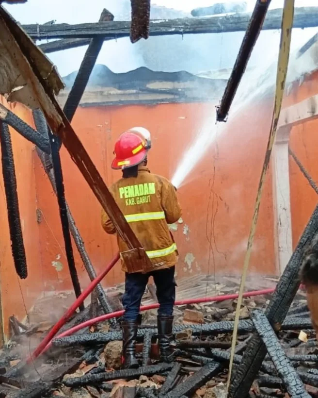 Garut — Dinas Pemadam Kebakaran Kabupaten Garut bergerak cepat memadamkan kebakaran yang melanda rumah milik Ibu Imas yang berlokasi di Kampung Cijelereun, Desa Mekarsari, Kecamatan Bayongbong, Kabupaten Garut, pada Selasa, 6 Januari 2026. Peristiwa tersebut