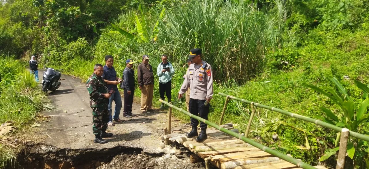 Garut | Akibat bencana alam yang mengakibatkan jalan putus di Jembatan Cibenda, wilayah Desa Simpang, Kecamatan Cibalong , Kabupaten Garut, jajaran Polsek Cibalong langsung turun ke lapangan melakukan pengecekan dan pengamanan, Senin (22/9/2025).