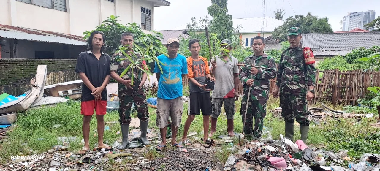 Koramil 1408-05/Mariso Gelar Karya Bhakti Penanaman Pohon di Kelurahan Kampung Buyang