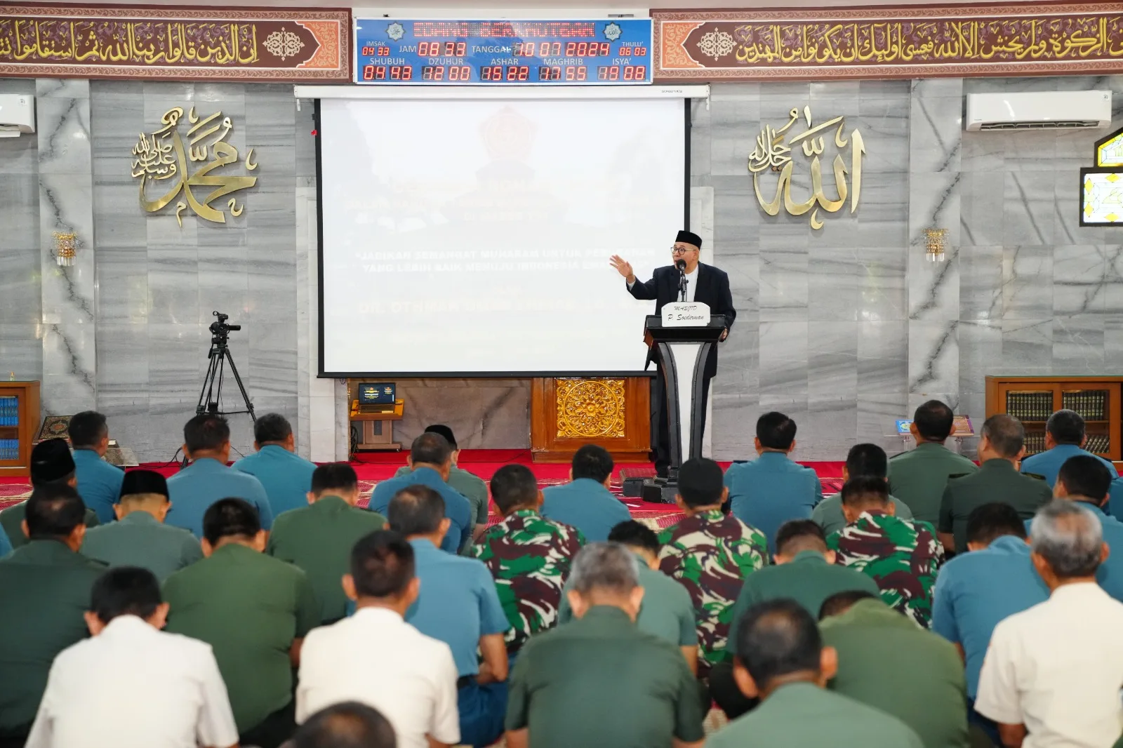 Panglima TNI Jenderal TNI Agus Subiyanto dalam sambutannya yang dibacakan Irjen TNI Laksdya TNI Dadi Hartanto menyampaikan bahwa peringatan Tahun Baru Hijriah pada hakekatnya merupakan sarana atau kesempatan untuk meningkatkan iman dan takwa kepada Allah SWT. “Sejarah mencatat bahwa Nabi Muhammad SAW dan para sahabat melaksanakan hijrah dari Mekkah ke Madinah, hijrah itu dilakukan bukan saja karena perintah Allah SWT, tetapi juga merupakan ujian keimanan sekaligus menjadi sarana pembentukan akhlak dalam kehidupan bermasyarakat yang lebih bermartabat,” jelasnya.