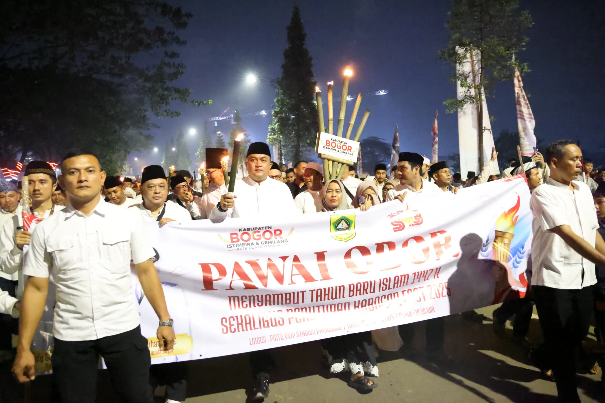 Bupati Bogor, Rudy Susmanto, memimpin langsung pawai obor yang melibatkan jajaran Forkopimda, tokoh agama, tokoh masyarakat, dan berbagai elemen masyarakat umum. Ia menegaskan bahwa kegiatan ini bukan sekadar seremoni, tetapi juga refleksi spiritual atas makna hijrah Rasulullah SAW.