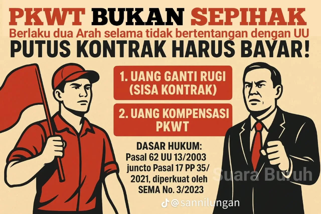 ​JAKARTA – Isu pemutusan hubungan kerja (PHK) pada kontrak Perjanjian Kerja Waktu Tertentu (PKWT) kembali menjadi sorotan. Sebuah informasi yang masif beredar menegaskan bahwa kewajiban membayar jika kontrak diputus berlaku dua arah dan tidak