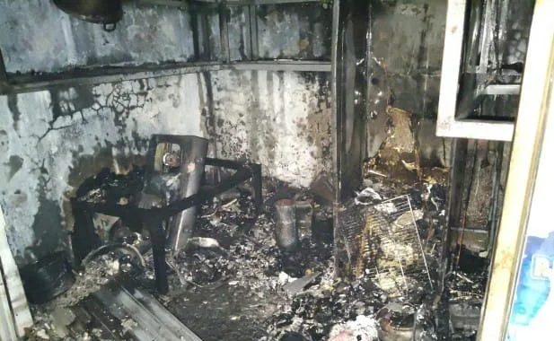 Diduga kebakaran dipicu oleh kompor yang masih menyala saat pemilik warung meninggalkan kios untuk menjajakan dagangan, sehingga api dengan cepat menjalar ke bagian plafon dan kios di samping kanan dan kiri.