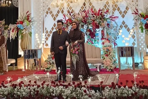 Dengan balutan busana pengantin yang elegan, Alvaigan tampak duduk di kursi pelaminan bersama sang istri tercinta, tampil serasi layaknya raja dan ratu sehari. Keduanya menunaikan salah satu sunah Rasulullah dengan penuh khidmat dan kebahagiaan.