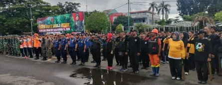 Dalam arahannya, pimpinan apel Letkol Inf Wahyu Yunus, S.IP., mengawali dengan mengucapkan salam serta mengajak seluruh peserta untuk melaksanakan kegiatan dengan penuh semangat dan rasa tanggung jawab. Ia menyampaikan bahwa apel Karya Bakti Skala Besar ini bertujuan untuk mengecek kesiapan personel dari seluruh unsur yang terlibat, baik dari TNI, pemerintah daerah, BPBD, Satpol PP, Damkar, relawan Banteng Komando, maupun dinas kebersihan lingkungan Kota Makassar.