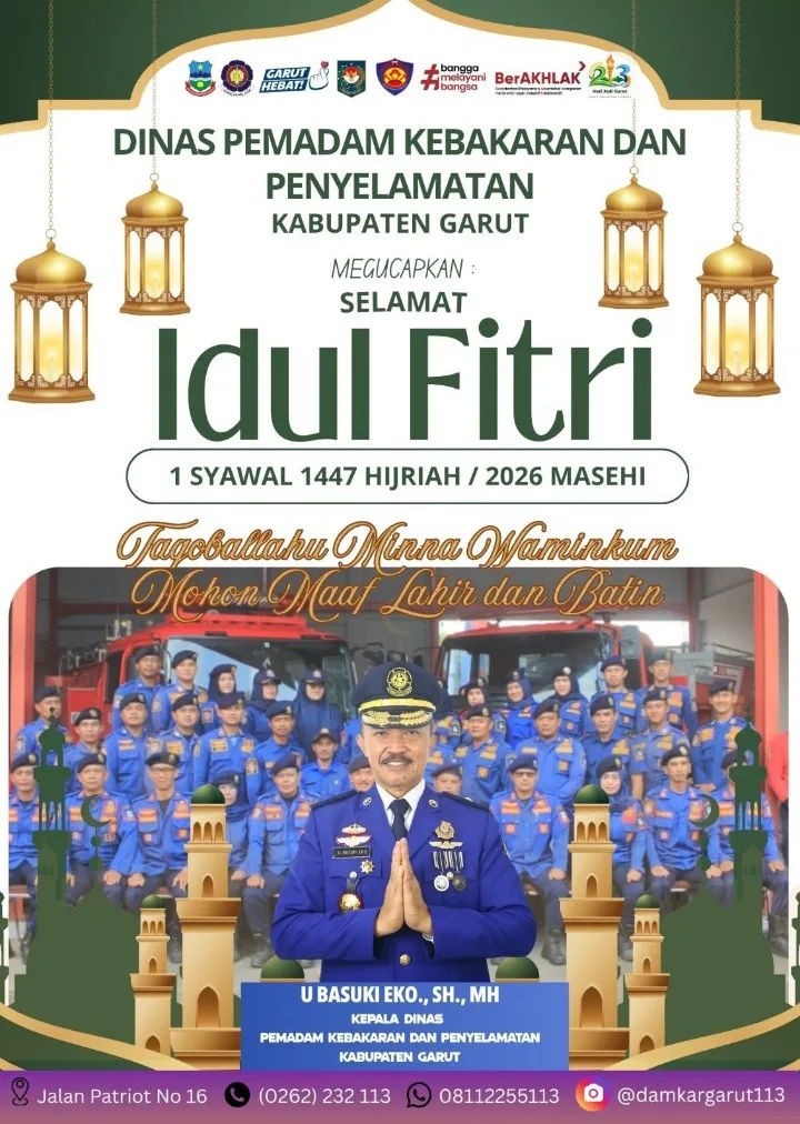 GARUT.(20 Maret 2026).Dalam rangka menyambut Hari Raya Idul Fitri 1447 Hijriah/2026 Masehi, Dinas Kebakaran dan Penyelamatan menyatakan kesiapan penuh dalam memberikan pelayanan terbaik kepada masyarakat. Momentum Idul Fitri yang identik dengan tradisi mudik, peningkatan aktivitas rumah tangga, serta penggunaan peralatan listrik dan memasak secara intensif, menjadi perhatian khusus bagi jajaran Dinas Damkar untuk meningkatkan kewaspadaan.
