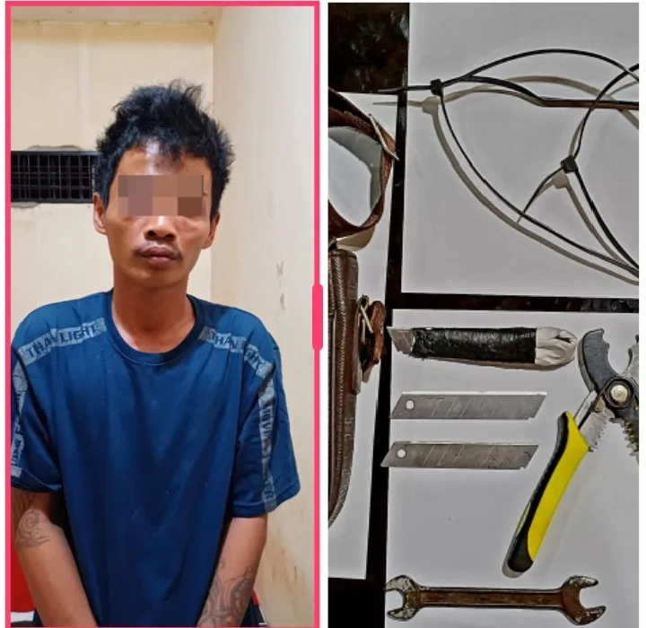 “Dari tangan pelaku, petugas juga mengamankan sejumlah barang bukti berupa dua buah tang warna kuning, tiga mata pisau cutter, satu kunci pas ukuran 12/13, serta lima gulung kabel power dengan panjang masing-masing sekitar 50 meter.” Kata Kapolsek, dikutip pada hari, Selasa (17/3/2026).