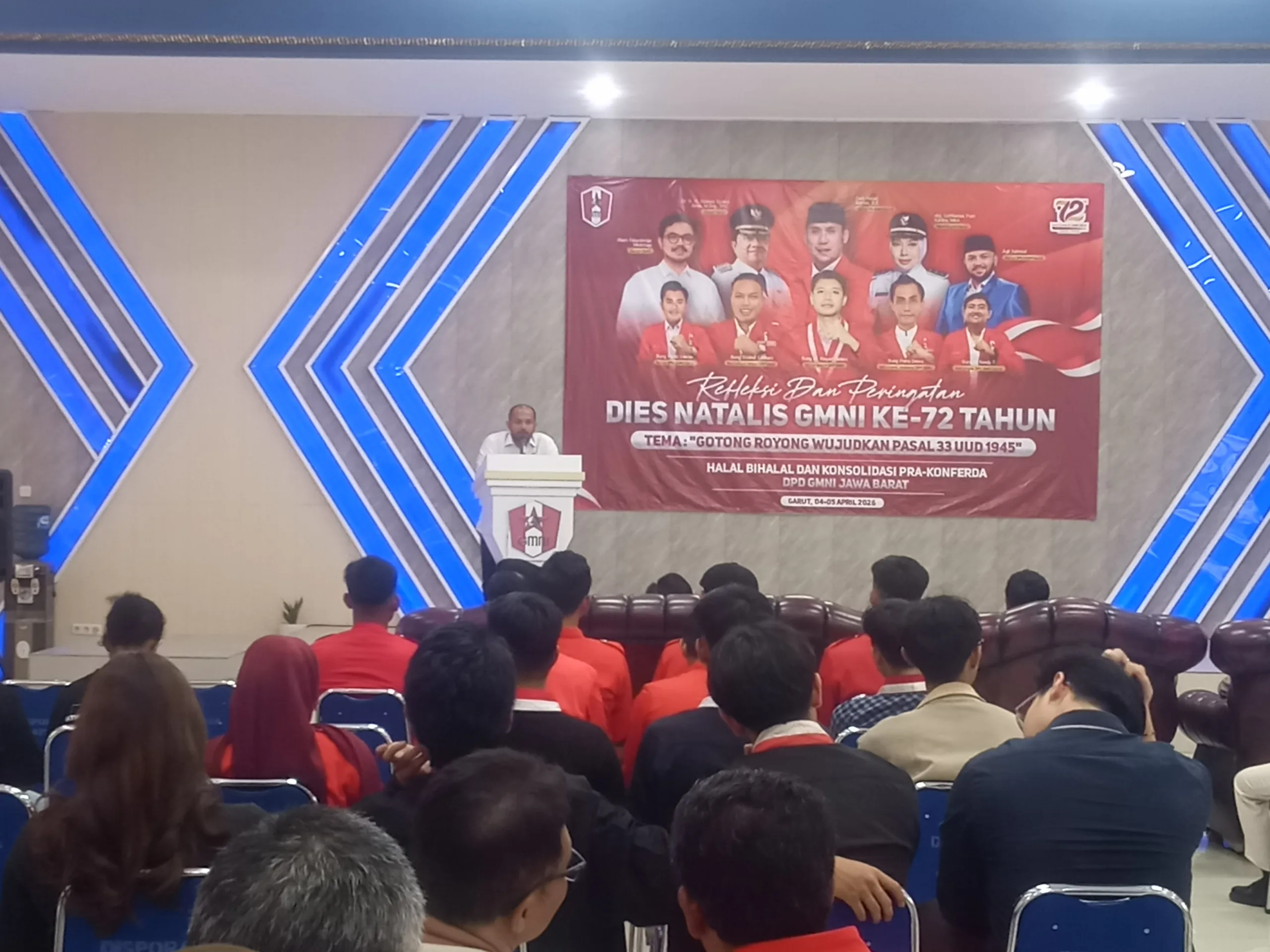 GARUT.(05 April 2026).Dalam suasana penuh khidmat dan semangat kebangsaan, Ketua KNPI Garut, Agil Syahrizal,Dalam Pidatonya didepan tamu undangan kehormatan diantaranya Bupati Garut DR H Syukur Amin,Kadispora,Kesbangpol,Kapolsek Tarogong kidul,Ketua DPC GMNI Bandung,Ketua DPC GMNI Garut dan Alumni GMNI,(Sabtu 4 April 2026)di Gedung Pemuda jalan Merdeka Haurpanggung Tarogong Kidul Garut, Agil menyampaikan sambutan pada acara Refleksi dan Peringatan Dies Natalis ke-72 GMNI. Momentum ini tidak hanya menjadi ajang perayaan perjalanan panjang organisasi, tetapi juga menjadi ruang refleksi atas kontribusi nyata GMNI dalam kehidupan berbangsa dan bernegara.