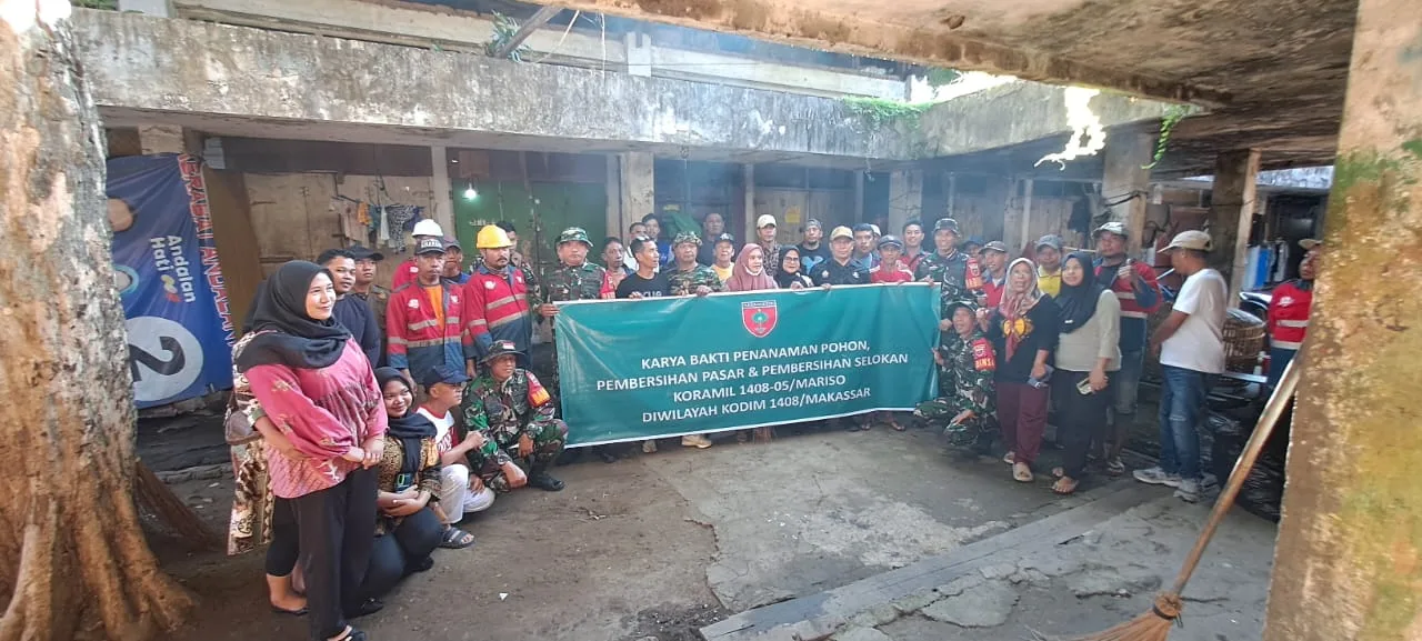 Makassar — Dalam rangka menjaga kebersihan lingkungan serta menciptakan pasar yang sehat dan nyaman bagi masyarakat, Koramil 1408-05/Mariso melaksanakan kegiatan Karya Bhakti berupa pembersihan pasar dan selokan di wilayah Kelurahan Tamarunang, Kecamatan Mariso, Kota Makassar, pada Jumat (14/3/2026).