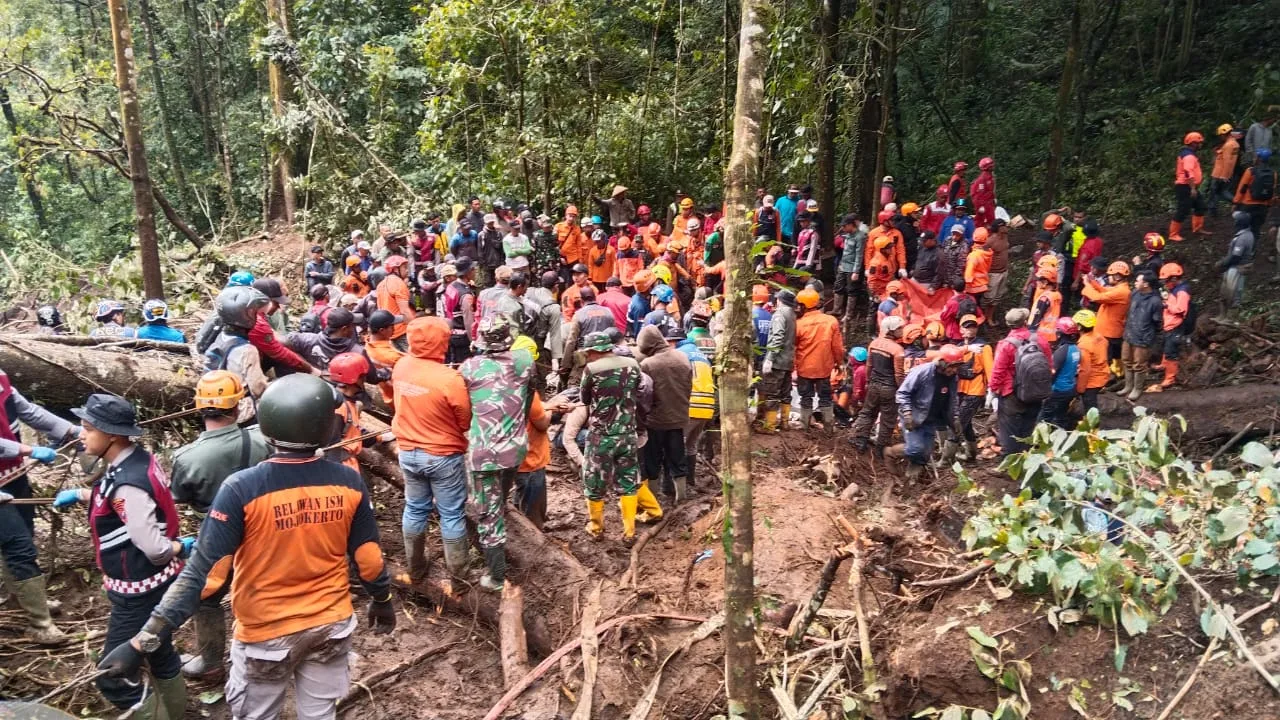 Kasdim 0815 Mojokerto, Mayor Inf Suwandi, memimpin langsung proses evakuasi di lokasi kejadian. Dengan sigap, prajurit TNI bersama tim gabungan bekerja keras mengevakuasi korban serta membersihkan material longsor yang menutup jalan.