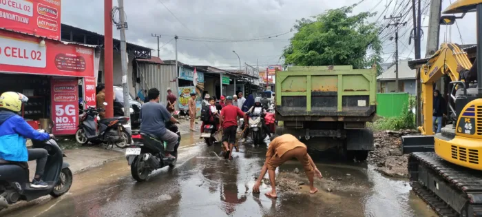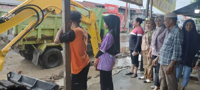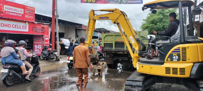 Dinas PU mengerahkan alat berat untuk melakukan pengerukan selokan dan drainase, disertai perbaikan dan perataan badan jalan yang rusak, pembersihan lumpur, serta pengaturan aliran air agar tidak meluap ke badan jalan dan permukiman warga.