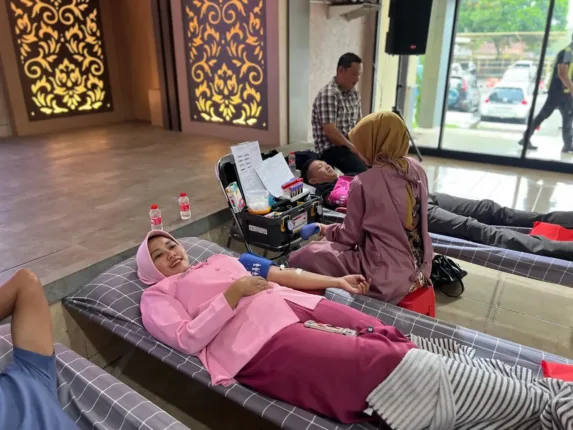 Proses donor darah dilakukan sesuai prosedur medis dengan pengawasan langsung dari tim UTDC PMI Kabupaten Garut, sehingga seluruh rangkaian kegiatan berjalan aman, tertib, dan lancar.