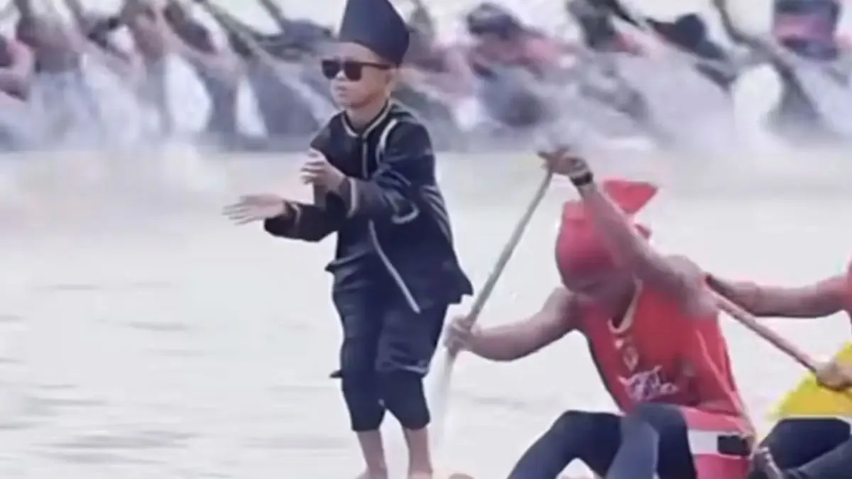 JAKARTA, 17 Agustus 2025. Rayyan Arkan Dhika, bocah fenomenal dengan gerakan “aura farming”, menggoyangkan Istana Merdeka lewat tarian Pacu Jalur di hadapan Presiden Prabowo Subianto saat perayaan HUT ke-80 RI.
