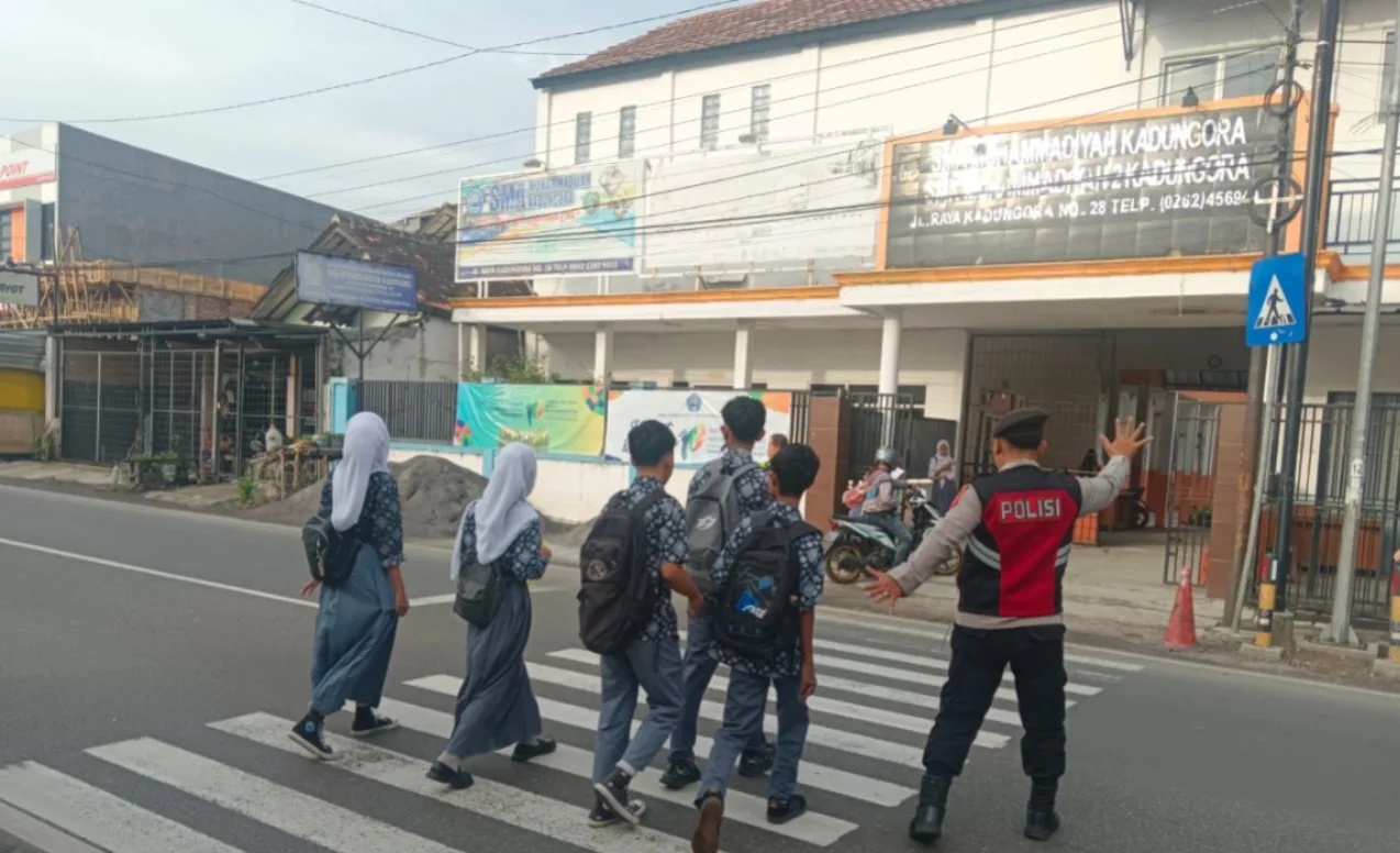 Selain memastikan kelancaran arus lalu lintas, personel juga membantu pelajar yang menyeberang jalan, memantau keamanan lingkungan, serta memberikan himbauan keselamatan berkendara kepada pengendara roda dua maupun roda empat.
