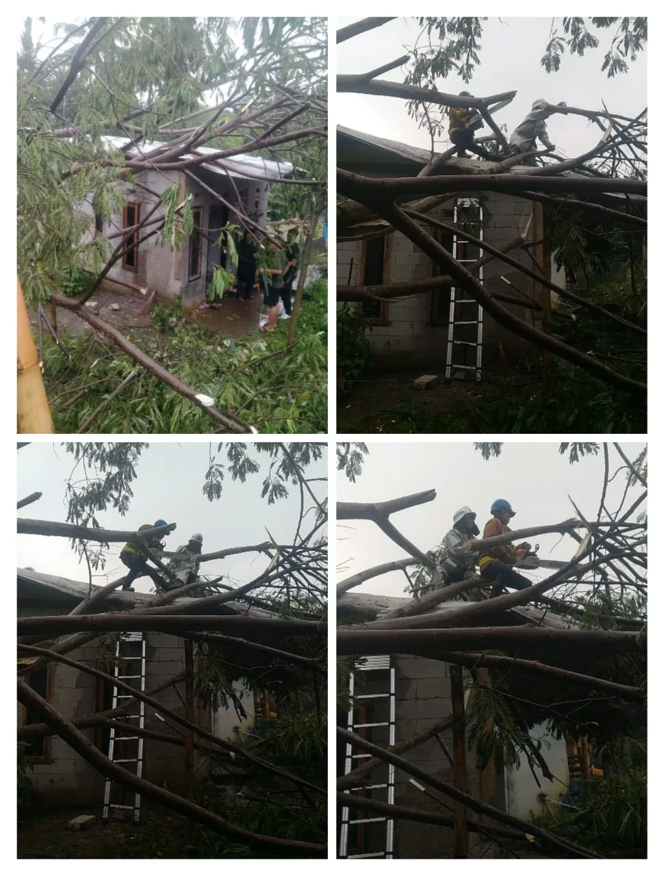 Salah satu rumah yang terdampak adalah milik Ibu Miki (37 tahun), warga Kampung Sirnasari RT 01 RW 08, Desa Maripari, Kecamatan Sukawening. Pohon besar tumbang dan menimpa bagian atap rumahnya.