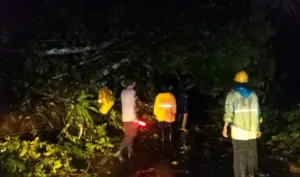 Setibanya di lokasi, petugas mendapati panjang longsoran sekitar 1 meter dengan ketinggian material mencapai 1 meter, sementara pohon tumbang memiliki tinggi sekitar 5 meter dan diameter sekitar 80 cm, menutup sebagian badan jalan.