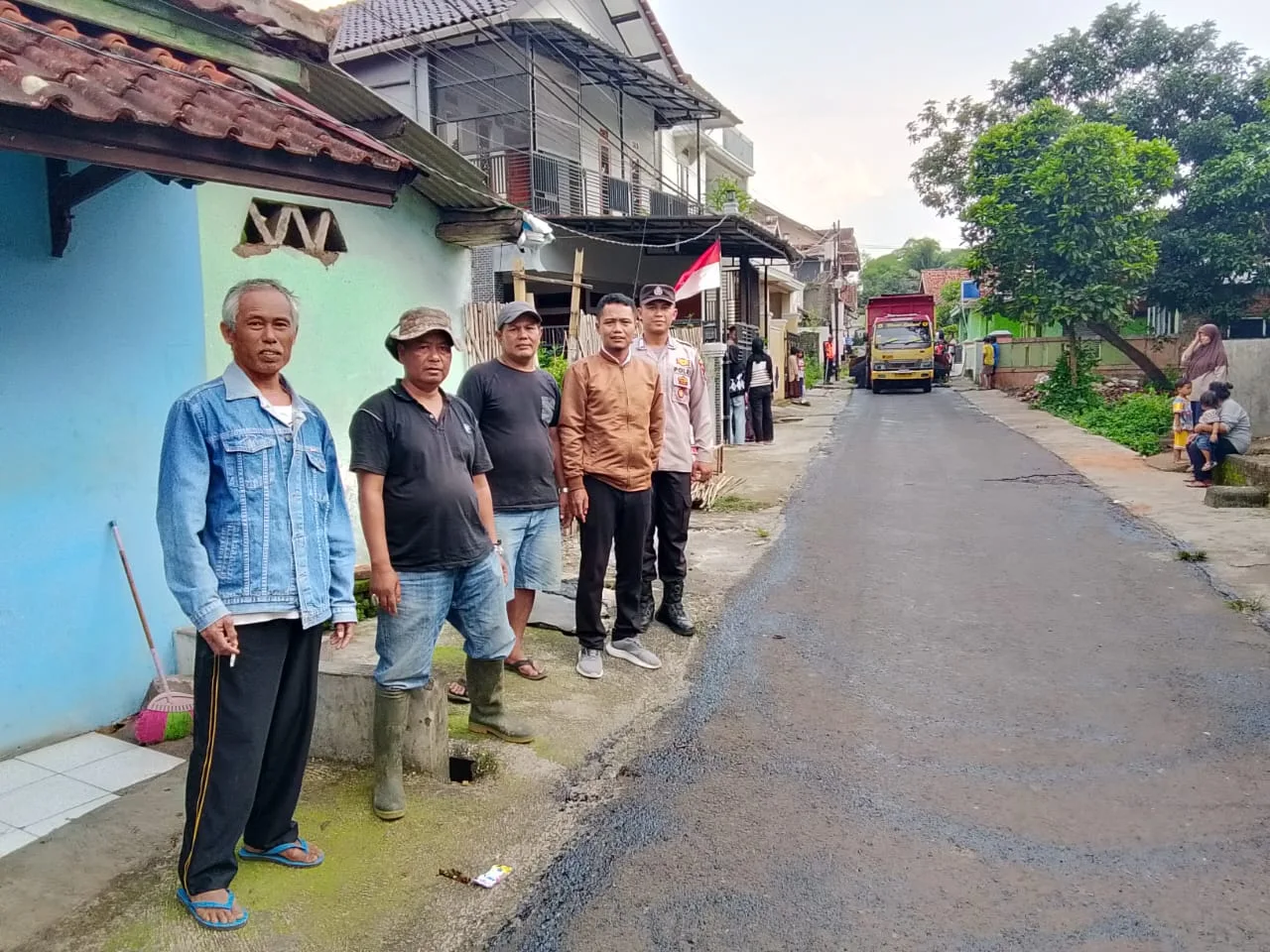 Pengerjaan jalan hotmix ini dihadiri oleh Babinsa Serka Dede Karliman Dirianto dan Bhabinkamtibmas Bripka Opik Ruhiyat, yang memastikan bahwa proses pembangunan berjalan lancar dan aman.
