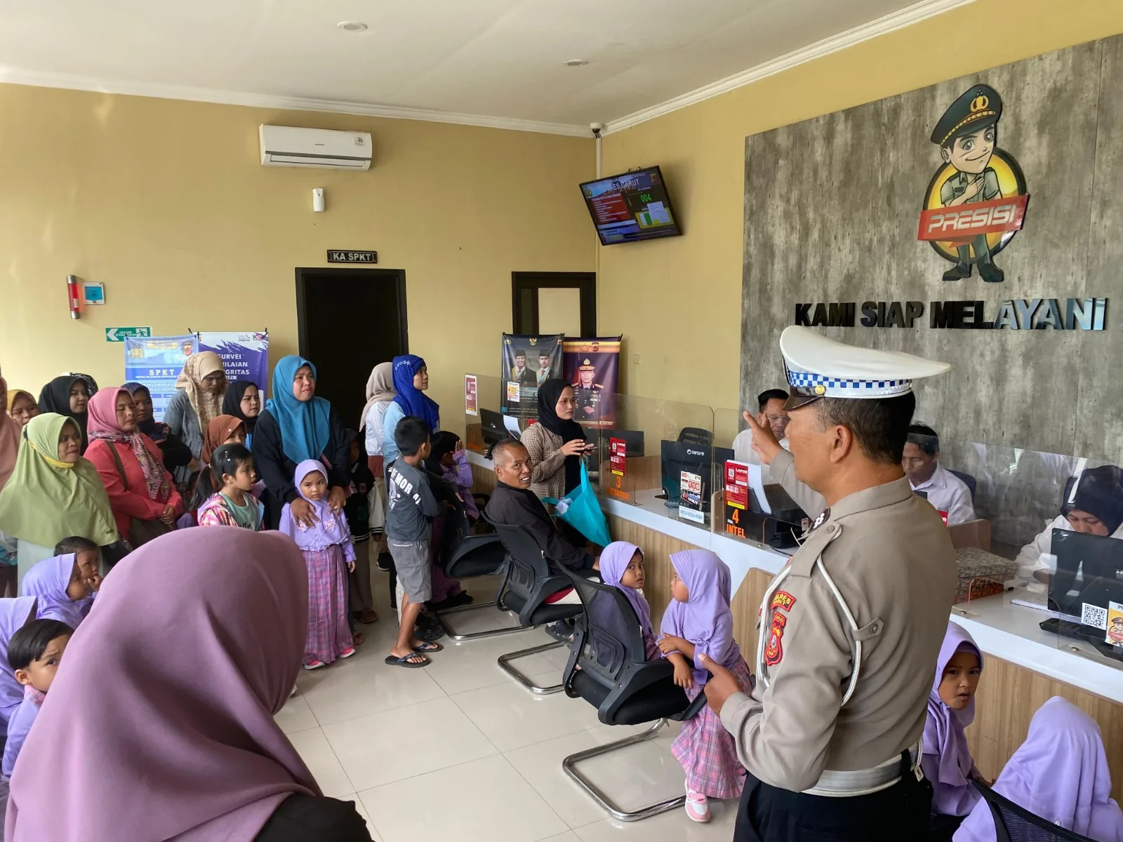 Kegiatan ini disambut langsung oleh personel Satuan Lalu Lintas Polres Garut, yang mengenalkan berbagai tugas kepolisian dengan cara yang menyenangkan dan edukatif. Anak-anak diajak berkeliling melihat ruang pelayanan, kendaraan patroli, serta diberi kesempatan mencoba naik mobil dinas polisi.
