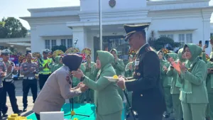 Garut – Dalam rangka memperingati Hari Ulang Tahun (HUT) Tentara Nasional Indonesia (TNI) ke-80, jajaran Polres Garut memberikan kejutan istimewa kepada Kodim 0611 Garut dengan membawa tumpeng sebagai bentuk ucapan selamat dan sinergitas TNI-Polri. Kegiatan tersebut berlangsung di Makodim 0611 Garut, pada Sabtu (5/10/2025).
