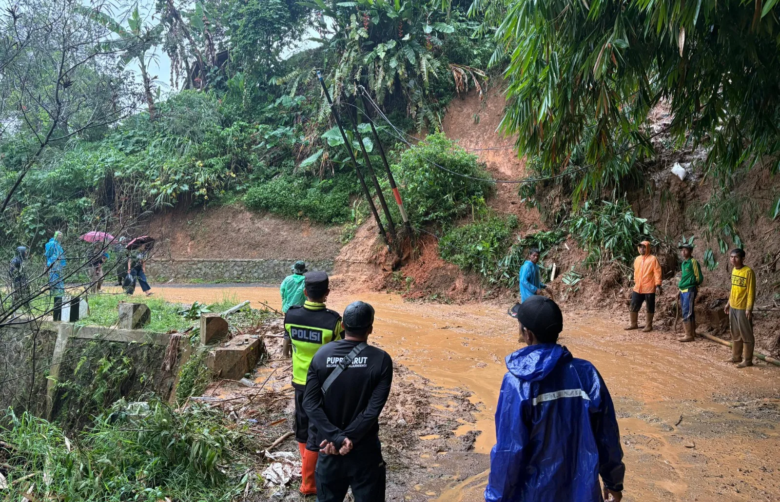 Garut – Personel Polsek Banjarwangi Polres Garut melaksanakan kegiatan patroli mitigasi bencana pasca hujan deras yang mengakibatkan terjadinya longsor dan lumpur menutup badan jalan di wilayah Kecamatan Banjarwangi, Kabupaten Garut, pada Senin (22/09/2025) sore.