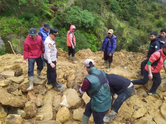 Garut – Pasca terjadinya bencana alam longsor di kawasan Taman Wisata Alam (TWA) Kawah Gunung Papandayan, jajaran Polsek Cisurupan Polres Garut bersama unsur TNI, pengelola kawasan, dan masyarakat melaksanakan monitoring serta evakuasi material longsor, pada Jumat (9/1/2026).