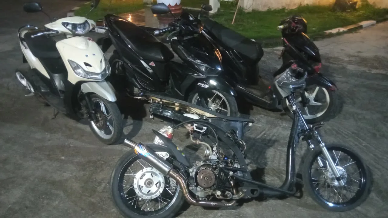 Selain itu, petugas turut mengamankan 4 (empat) unit sepeda motor yang diduga akan digunakan untuk balap liar, yaitu Honda Beat (setelan racing/balap), Yamaha Mio, Honda Vario dan Honda Beat warna merah tanpa plat nomor.