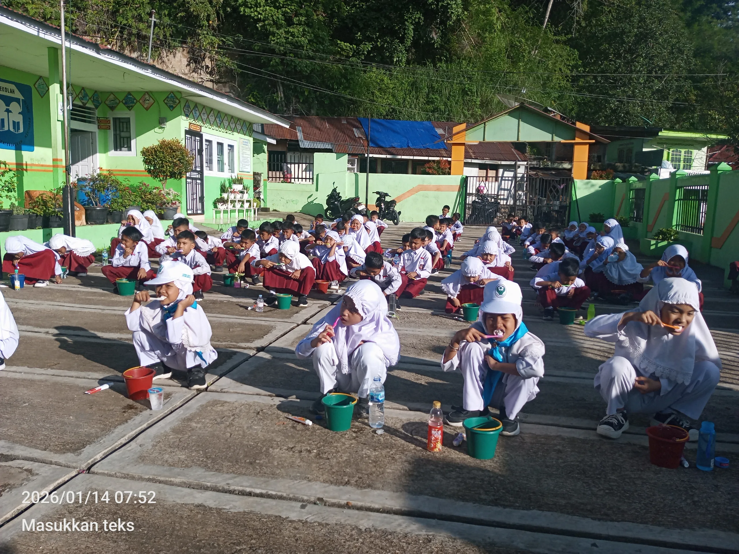Sekolah ini rutin melaksanakan gosok gigi bagi muridnya setiap hari rabu di halaman sekolah dan kegiatan hari ini di pandu langsung oleh petugas puskesmas ibu Indah Prima Yanti,A.Md.KG ,Edukasi kesehatan gigi beliau paparan kepada seluruh murid yang mana berpengaruh kepada kecerdasan dan daya kerja otak kita ujarnya.