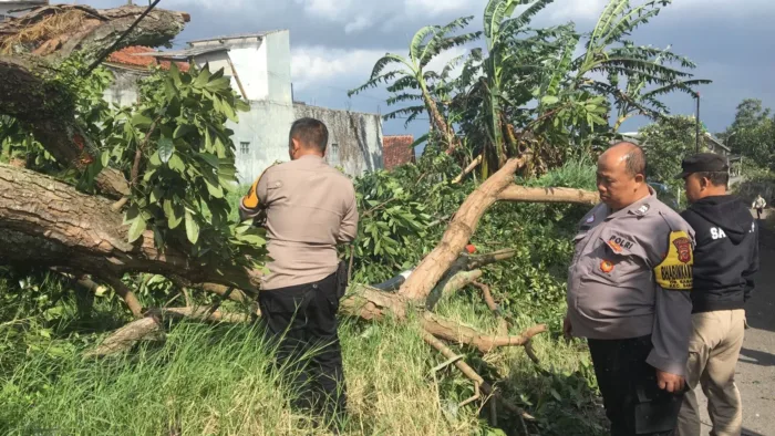 Garut — Hujan deras disertai angin kencang yang melanda wilayah Kecamatan Samarang pada Sabtu sore (24/01/2026) mengakibatkan sebuah pohon tumbang dan menutup akses jalan menuju Pesantren Jawiyah di Jalan Raya Samarang, Kampung Kalikingemped, RT 05 RW 09, Desa Samarang, Kabupaten Garut.