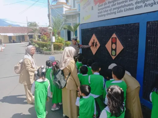 Garut – Dalam rangka menumbuhkan kesadaran akan pentingnya keselamatan berlalu lintas sejak usia dini, Satuan Lalu Lintas (Satlantas) Polres Garut melaksanakan kegiatan Dikmas Lantas “Polisi Sahabat Anak” bersama anak-anak TK Muslimat NU, bertempat di Mako Polres Garut, Senin (27/10/2025).