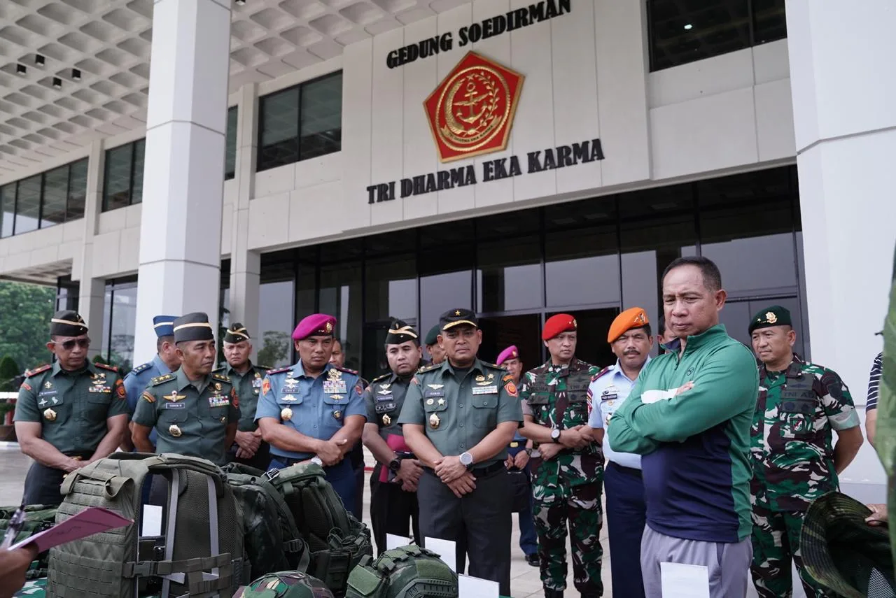 JAKARTA | Panglima TNI Jenderal TNI Agus Subiyanto meninjau acara gelar bekal Kelengkapan Perorangan Lapangan (Kaporlap) dan Kelengkapan Satuan dan Lapangan (Kapsatlap) untuk Satuan Tugas (Satgas) operasi dalam negeri TA 2025, bertempat di Plaza Mabes TNI, Cilangkap, Jakarta Timur, Rabu (30/10/2024).