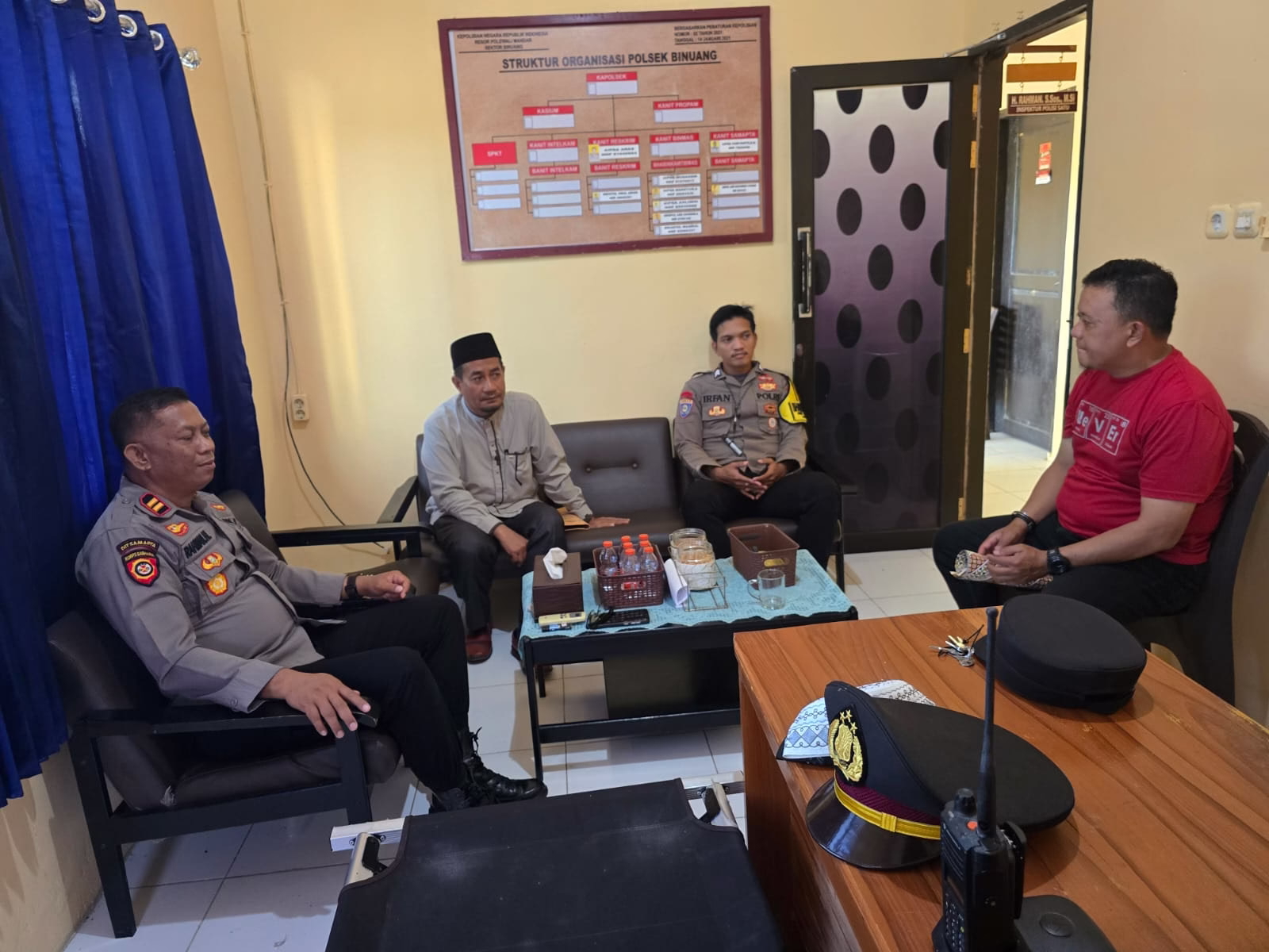 Pimpinan Pondok Pesantren (Ponpes) DDI Kanang, Ustaz Nasrullah, mendatangi Mapolsek Binuang Polres Polman. pada Senin (15/09/2025)