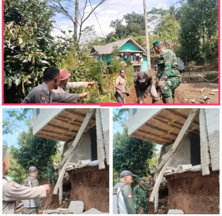 Polsek Singajaya Cek Kejadian Bencana Tanah Longsor Akibat Curah Hujan Tinggi Di Desa Sukamulya