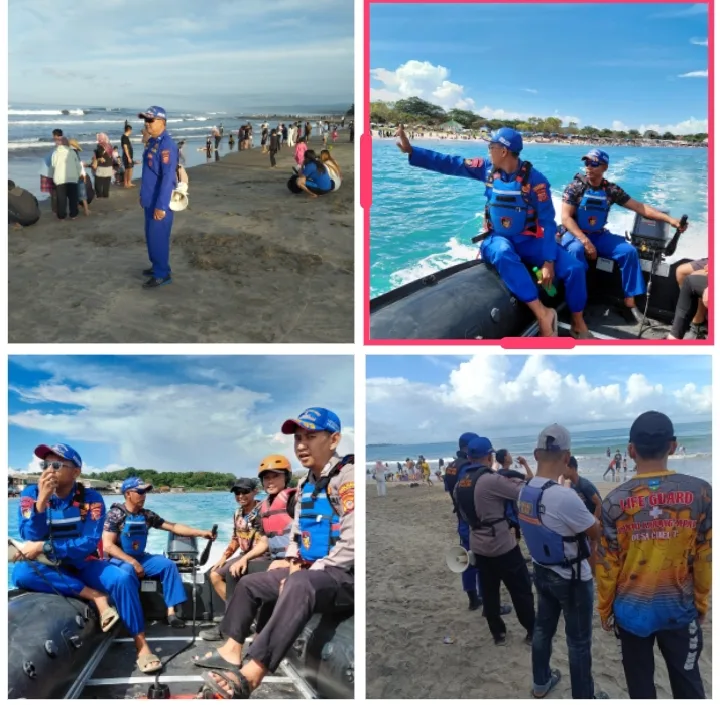 “Kami melaksanakan patroli menggunakan kapal serta melakukan penyisiran di sepanjang pantai untuk memastikan keamanan wisatawan. Selain itu, kami juga memberikan himbauan agar pengunjung selalu berhati-hati saat beraktivitas di area pantai,” ujar Iptu Aep Saprudin.