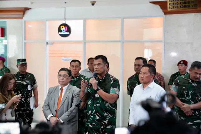 Wakil Panglima TNI Jenderal TNI Tandyo Budi R bersama Wakil Menteri Pertahanan Republik Indonesia (Wamenhan RI) Donny Ermawan Taufanto, didampingi para Kepala Staf Angkatan